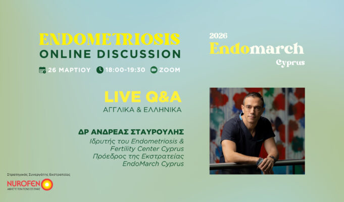 Η Ανοικτή Διαδικτυακή Συζήτηση πραγματοποιείται στο πλαίσιο της Εκστρατείας EndoMarch Cyprus, η οποία τελεί υπό την Αιγίδα του Υπουργείου Υγείας και υλοποιείται καθ’ όλη τη διάρκεια του Μαρτίου, με Στρατηγικό Συνεργάτη το Nurofen.