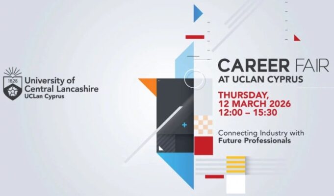 Tο Πανεπιστήμιο UCLan Cyprus, πιστό στη δέσμευση του για ουσιαστική διασύνδεση με την αγορά εργασίας και με συνέπεια στην προώθηση της απασχολησιμότητας των φοιτητών, βρίσκεται στην ευχάριστη θέση να φιλοξενήσει την ετήσια έκθεση καριέρας του Πανεπιστημίου, την Πέμπτη, 12 Μαρτίου 2026, από τις 12:00 μέχρι τις 15:30.