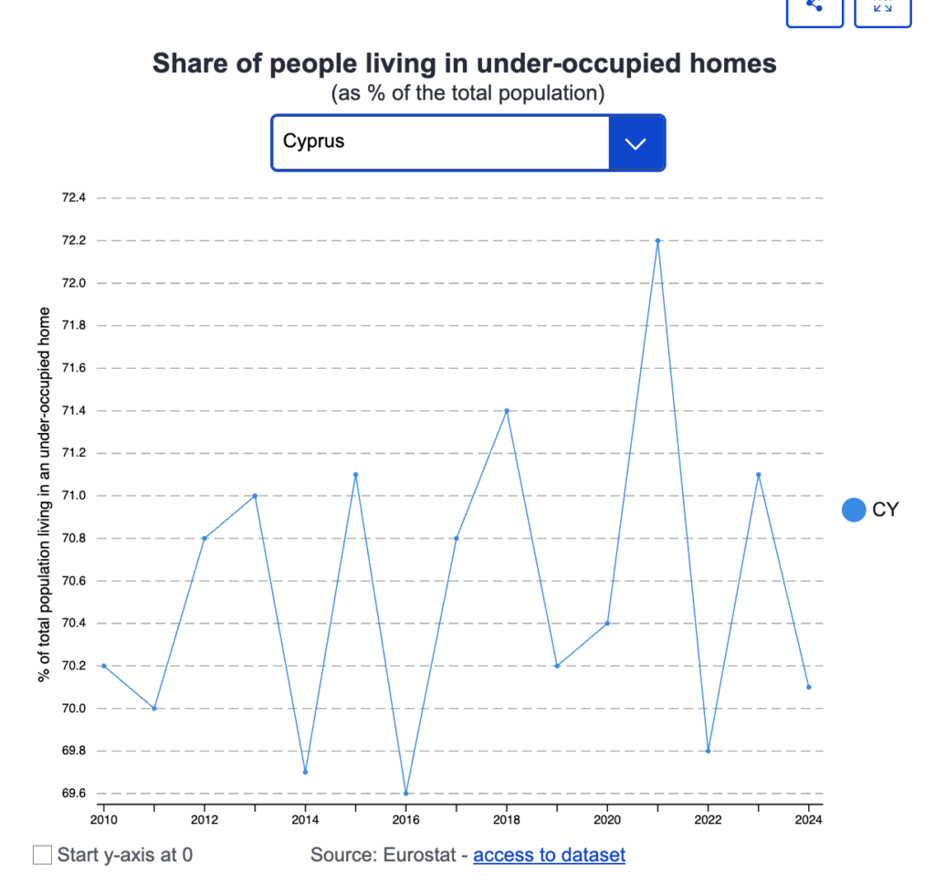 το 70% των κατοικιών στην Κύπρο χαρακτηρίζονται ως υποκατοικημένες, το υψηλότερο ποσοστό στην ΕΕ.