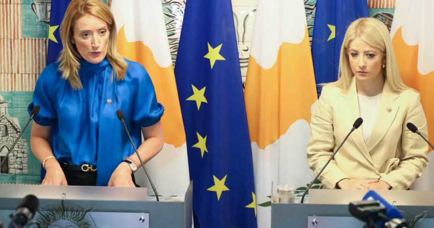 Κατ’ ιδίαν συνάντηση με την Πρόεδρο του Ευρωπαϊκού Κοινοβουλίου, Ρομπέρτα Μέτσολα, πραγματοποιεί σήμερα το πρωί η Πρόεδρος της Βουλής των Αντιπροσώπων, Αννίτα Δημητρίου, στο πλαίσιο της Διάσκεψης των Προέδρων του ΕΚ που φιλοξενεί η Κυπριακή Δημοκρατία.