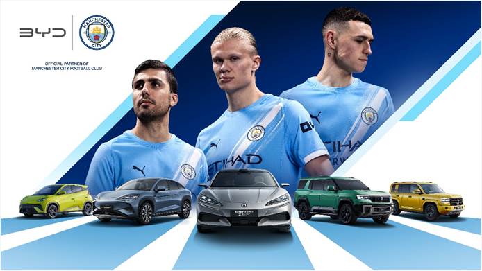 Η BYD, ο κορυφαίος στον κόσμο κατασκευαστής οχημάτων νέας ενέργειας και βιώσιμων λύσεων κινητικότητας, ανακοίνωσε τη σύναψη συμφωνίας με τη Manchester City, στο πλαίσιο της οποίας αναλαμβάνει τον ρόλο του επίσημου αυτοκινητιστικού συνεργάτη του ποδοσφαιρικού συλλόγου.