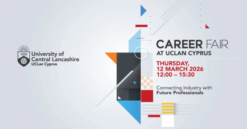 Το Πανεπιστήμιο UCLan Cyprus, πιστό στη δέσμευση του για ουσιαστική διασύνδεση με την αγορά εργασίας και με συνέπεια στην προώθηση της απασχολησιμότητας των φοιτητών, βρίσκεται στην ευχάριστη θέση να φιλοξενήσει την ετήσια έκθεση καριέρας του Πανεπιστημίου, την Πέμπτη, 12 Μαρτίου 2026, από τις 12:00 μέχρι τις 15:30.