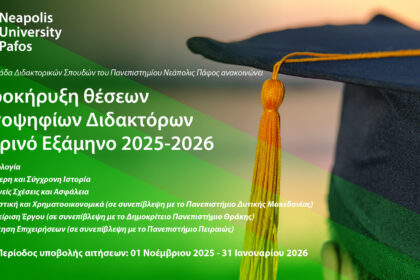 Προκηρύσσονται Θέσεις Υποψηφίων Διδακτόρων για το Εαρινό Εξάμηνο 2025–2026 στο Παν. Νεάπολις Πάφος